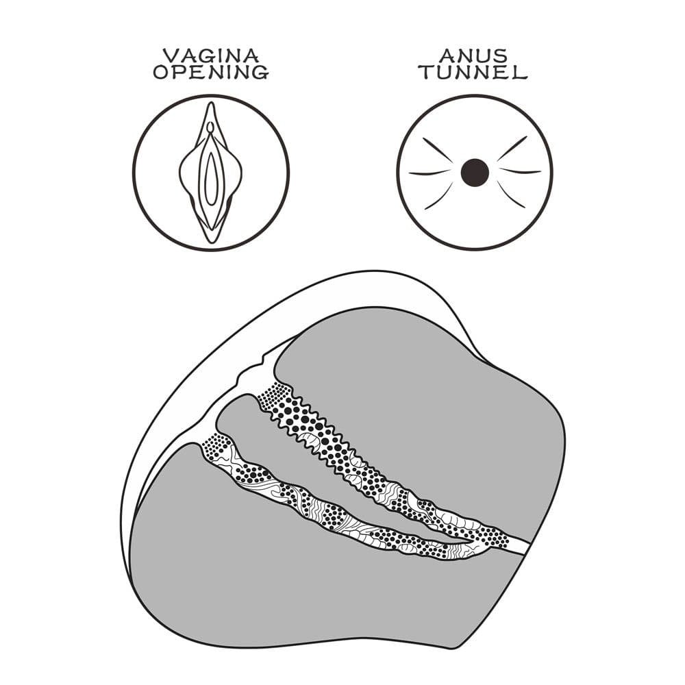 Modellről mintázott, bőrszerű anyagból készült, férfiaknak ajánlott erotikus játék, valósághűen kialakított ánusz- és vaginanyílásokkal.